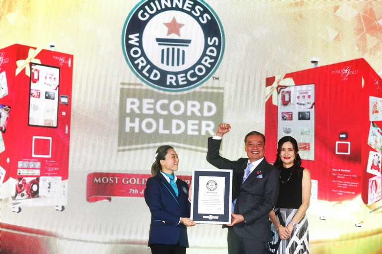 Datuk Seri Wong Chun Ho, who is also the President of the Malaysia Gold Association and the Founder & Executive Chairman of Public Gold, along with his wife Datin Seri Lim Chee Ting, a Director of the Public Gold Foundation, received the certificate on behalf of the company from the official Guinness World Records adjudicator, Emi Saito.