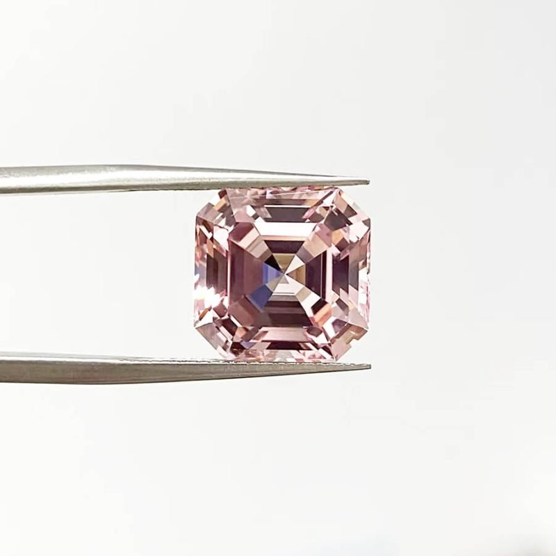 This lab-grown pink sapphire features a classic square Asscher cut, offering exceptional brilliance. Available in a range of sizes from 5x5mm to 12x12mm, each stone boasts VVS clarity and an excellent cut for maximum light performance. The gem exhibits a soft, desirable morganite pink hue. Custom cuts are available to meet specific design requirements. The chemical composition is Al2O3 with a hardness of 9.0 on the Mohs scale, making it durable for fine jewelry. Refractive index is 1.76-1.77.