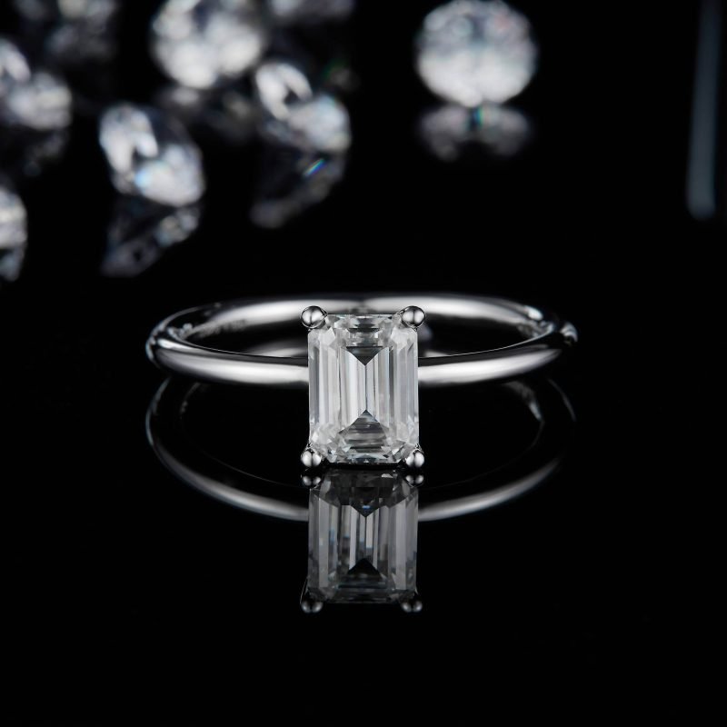 这款经典祖母绿切割莫桑钻订婚戒指,彰显永恒优雅。主石为D色,VVS净度,可选1.0克拉和2.0克拉。戒托采用镀白金的925银材质,并配有精美首饰盒。莫桑钻的比重为3.21-3.22。本产品由三家梧州宝石加工企业生产。