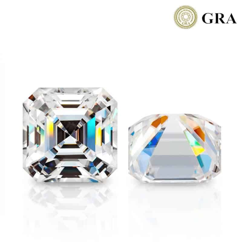 这款优质无色莫桑石采用优雅的阿斯切琢形,提供DEF和GH色级。宝石尺寸从3x3mm到11x11mm不等,拥有VVS净度和极优切工,确保卓越的火彩。每颗超过0.5克拉的宝石均附有GRA证书。其硬度达9.25,色散度高,是精致珠宝中耐用且璀璨的优选。