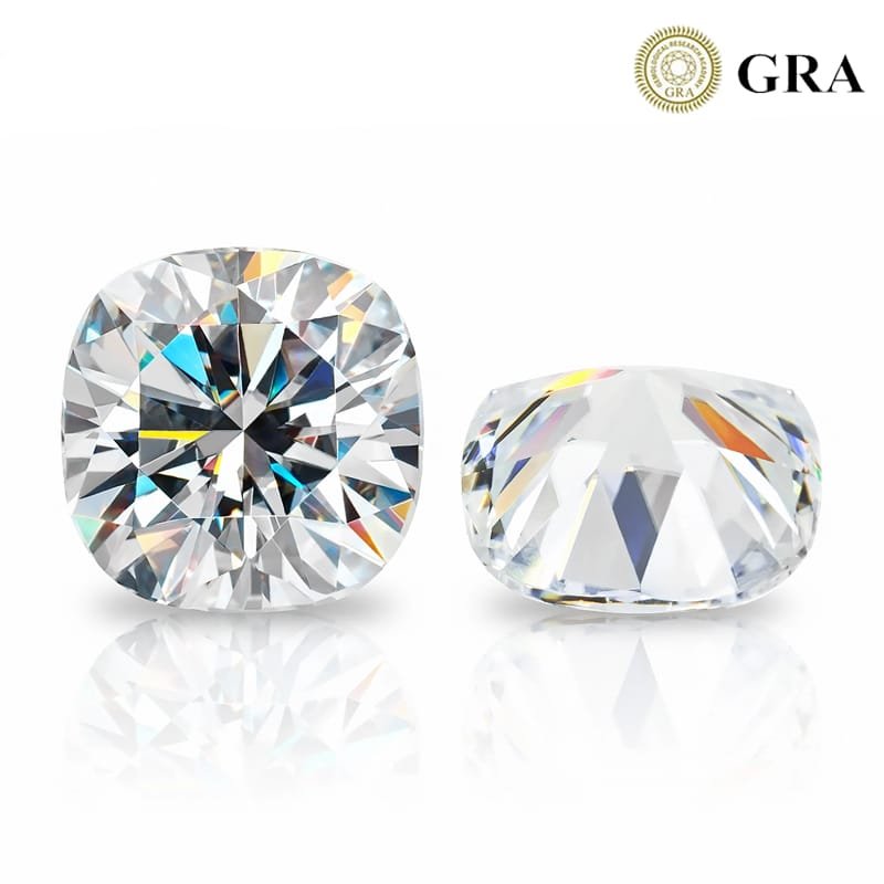 这款优质无色莫桑石采用璀璨的枕形切工。提供DEF和GH色级,VVS净度,切工极优,确保最大的火彩和亮度。宝石尺寸范围广泛,从3x3毫米到11x11毫米(0.15至7.00克拉)。每颗超过0.5克拉的宝石均附有GRA证书。硬度达9.25,色散高,是一款耐用且闪耀非凡的宝石选择。