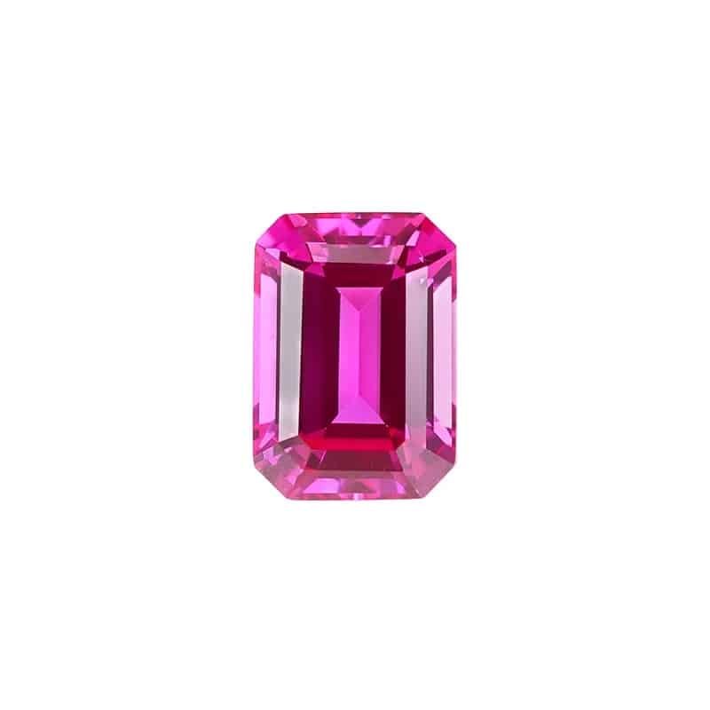 ياقوت مزروع في المختبر بمقطع زمردي بلون وردي لامع نابض بالحياة. متوفر بمقاسات من
