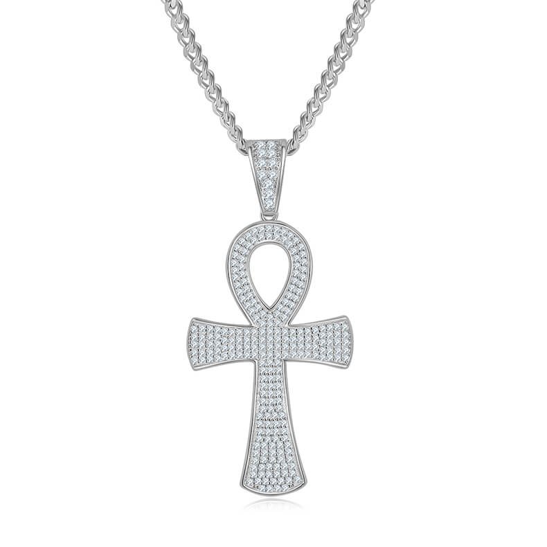 This men's cross pendant necklace showcases a round D-color VVS clarity moissanite, offering exceptional brilliance. It is crafted from 925 sterling silver plated with 18K gold for a luxurious finish. The necklace measures 45cm in length with a 3cm extender for adjustable fit. Each piece is presented in a beautiful gift box. The moissanite has a specific gravity of 3.21-3.22. This item is suitable for wholesale, with customization and packaging options available upon inquiry.