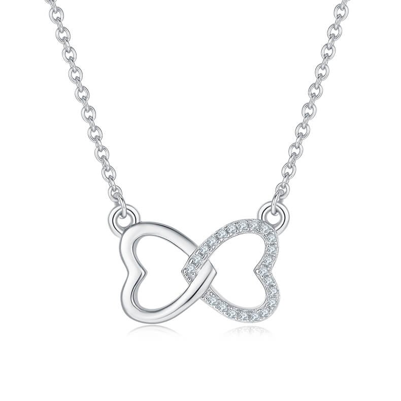تظهر هذه القلادة الأنيقة ذات القلب المتشابك مويسانيت دائري لامع بلون D ووضوح VVS. تم ترصيع الحجر بالفضة الإسترلينية المطلية بالذهب عيار 18 قيراطًا للحصول على تشطيب فاخر. يبلغ الوزن الإجمالي للقطعة 3.05 جرام وتُقدم في صندوق هدايا جميل، جاهزة للإهداء. الوزن النوعي للمادة هو 3.21-3.22.