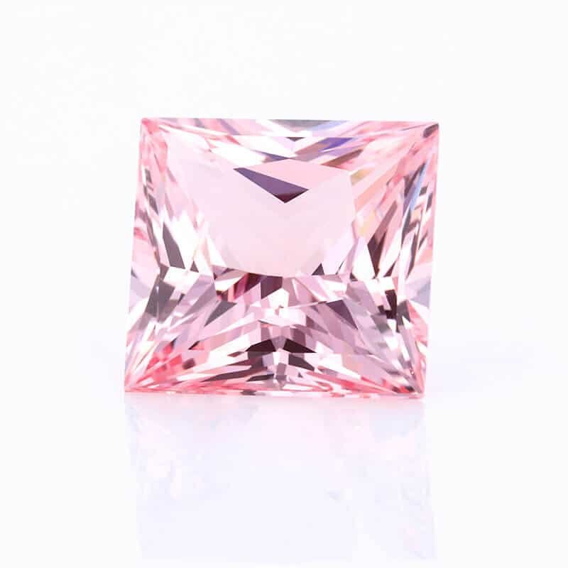 This square princess cut gem is a lab-grown pink sapphire, also referred to as morganite pink sapphire. It is available in sizes ranging from 5x5mm to 10x10mm. The stone features an excellent cut and VVS clarity, showcasing a beautiful pink hue. It shares all chemical, physical, and optical properties of natural pink sapphire. Custom cuts are available upon request.